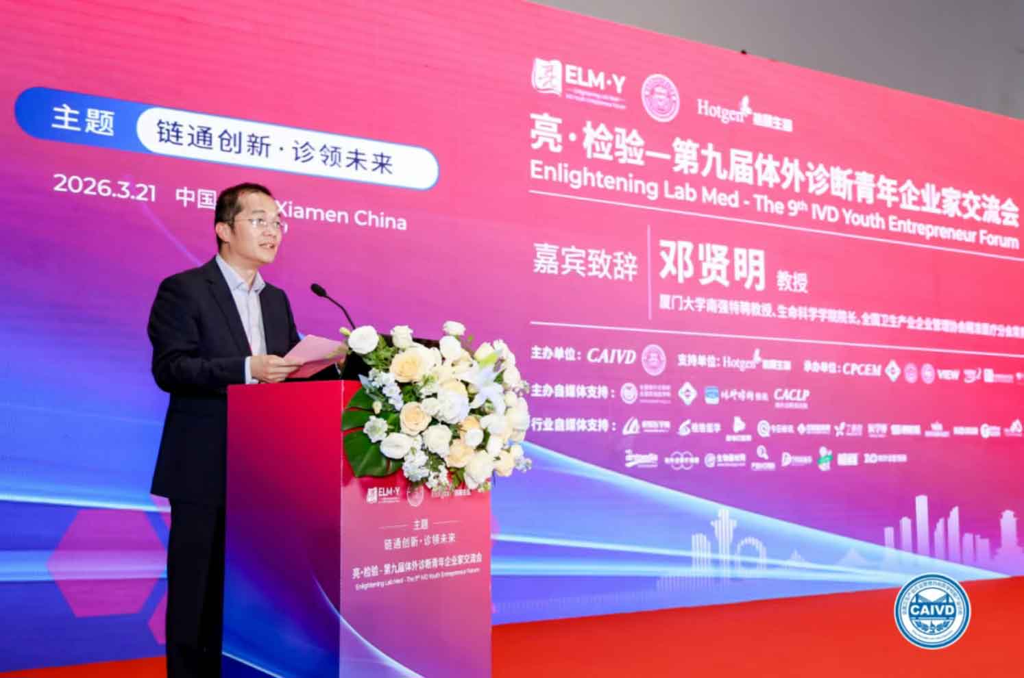 会议在邓贤明教授与林长青董事长的致辞中拉开帷幕。邓贤明教授表示,厦门大学作为生命科学领域的重要科研基地之一,始终致力于推动基础研究与产业应用的深度融合,期待与青年企业家们携手,共同探索校企协同创新的新路径。林长青董事长则表示非常荣幸能与厦门大学生命科学学院联合主办本届交流会,会议旨在搭建一个思想碰撞、资源链接、合作共赢的平台,为体外诊断产业的可持续发展注入源源不断的青春动能。