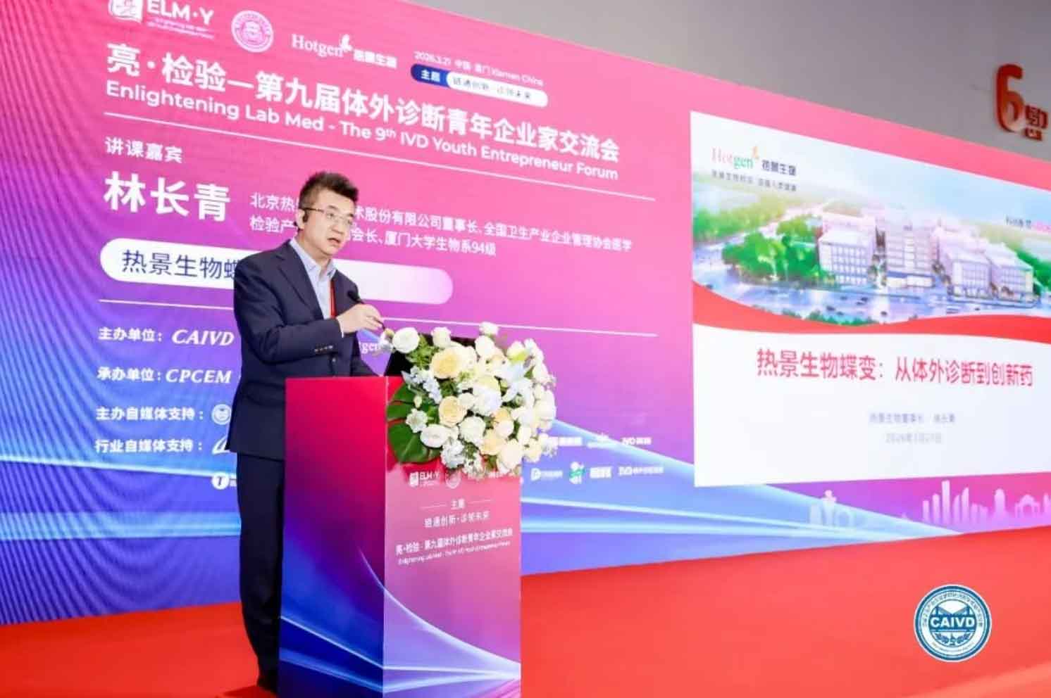 林长青董事长以《热景生物蝶变》为题,分享了企业从单一产品到多元化布局的转型之路。