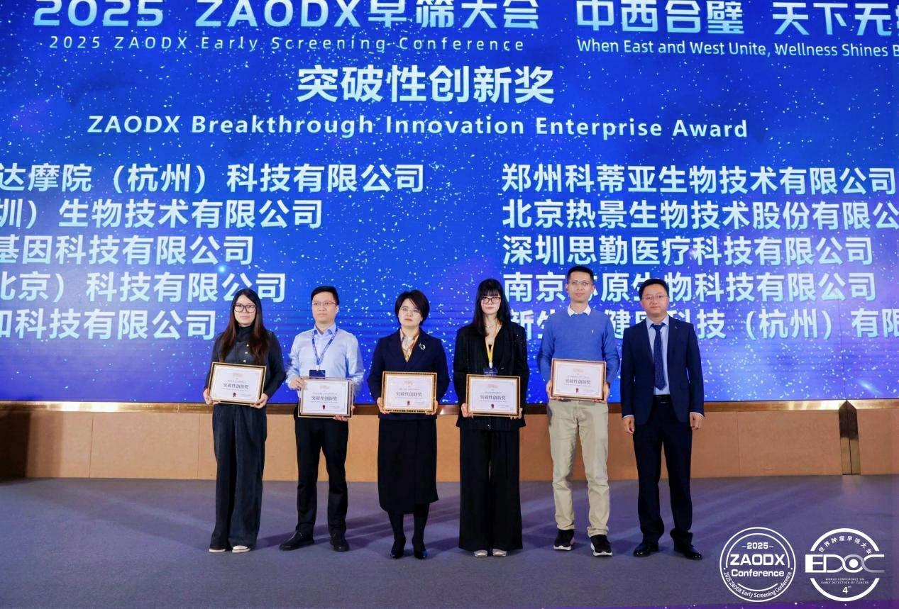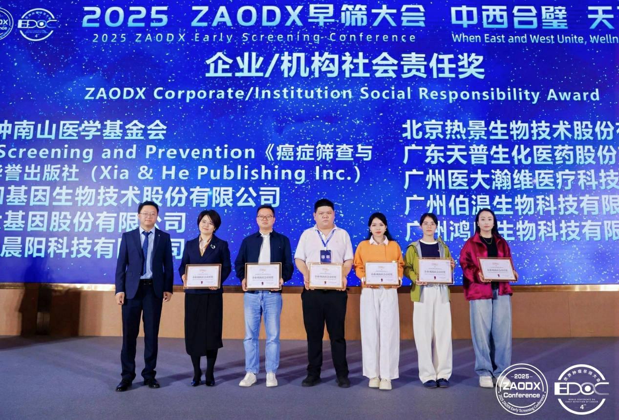 12月20日-21日,以“中西合璧,天下无疾”为主题的“2025 ZAODX早筛大会”在广州举办。会议期间,主办方公布了第四届“金筛奖”榜单,并举行线下颁奖仪式。热景生物凭借“C-GALAD肝癌风险预警模型”的创新性以及“肝癌早筛健康中国行”公益项目的巨大社会和经济价值分别荣获“突破性创新奖”与“企业/机构社会责任奖”。一次斩获两项行业荣誉,体现了业界对公司在肝癌早筛领域技术创新与社会贡献的充分肯定。