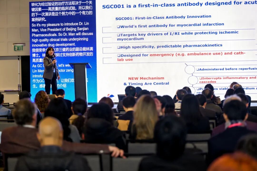 当地时间 2026 年 1 月 12 日,全球生物医药领域的 “风向标”—— 第 44 届摩根大通医疗健康大会(J.P. Morgan Healthcare Conference)在美国旧金山盛大召开。舜景医药副总经理孟玲博士应邀出席大会并重磅宣布:全球首创针对急性心肌梗死的抗体治疗药物 SGC001 正式启动Ⅱ期临床试验。该药物凭借突破性的治疗机制、精准的临床设计以及Ⅰ期试验中展现的优异数据,一经公布便引发与会投资者与行业同仁的关注与讨论。