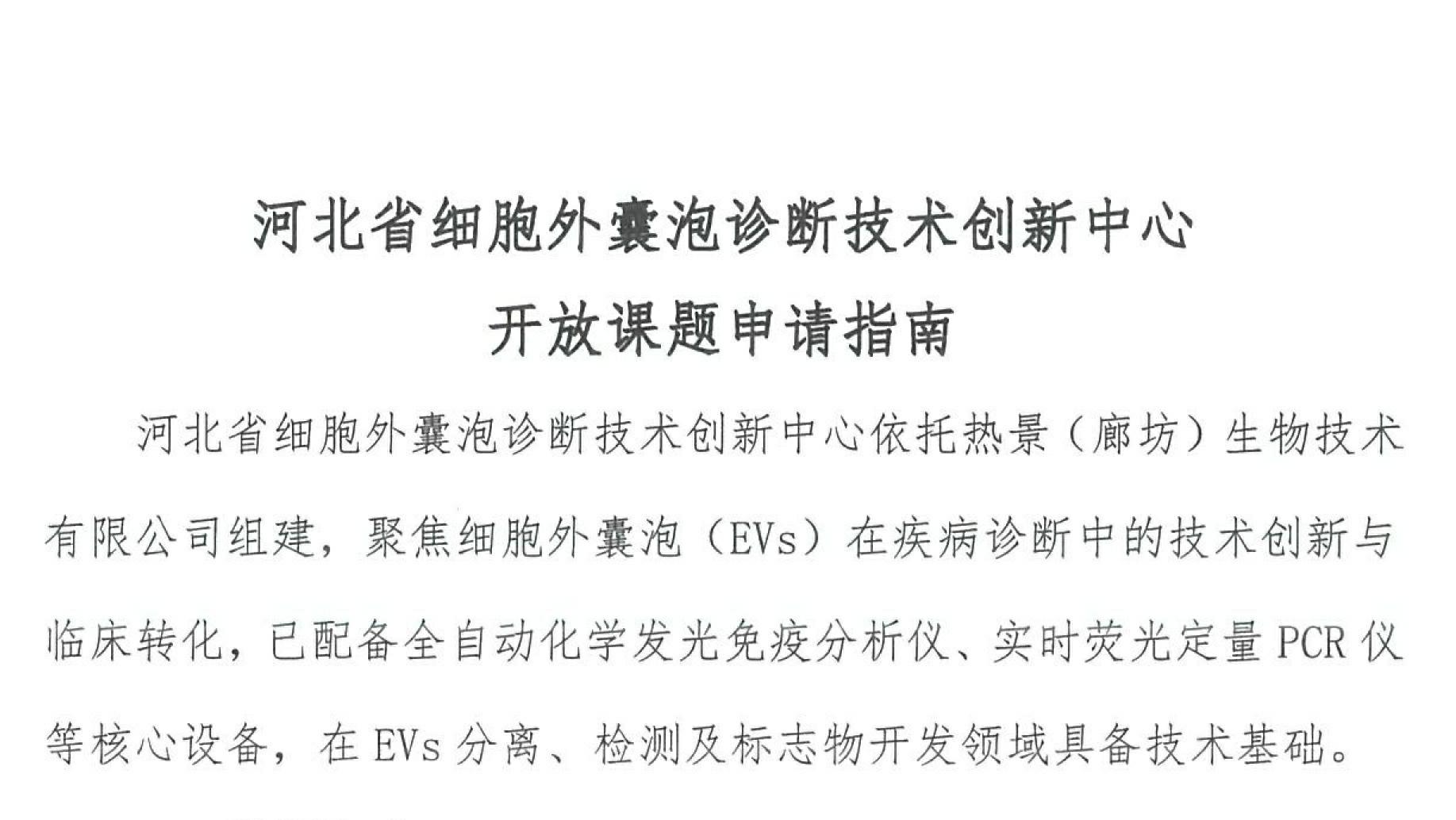 河北省细胞外囊泡诊断技术创新中心开放课题申请指南